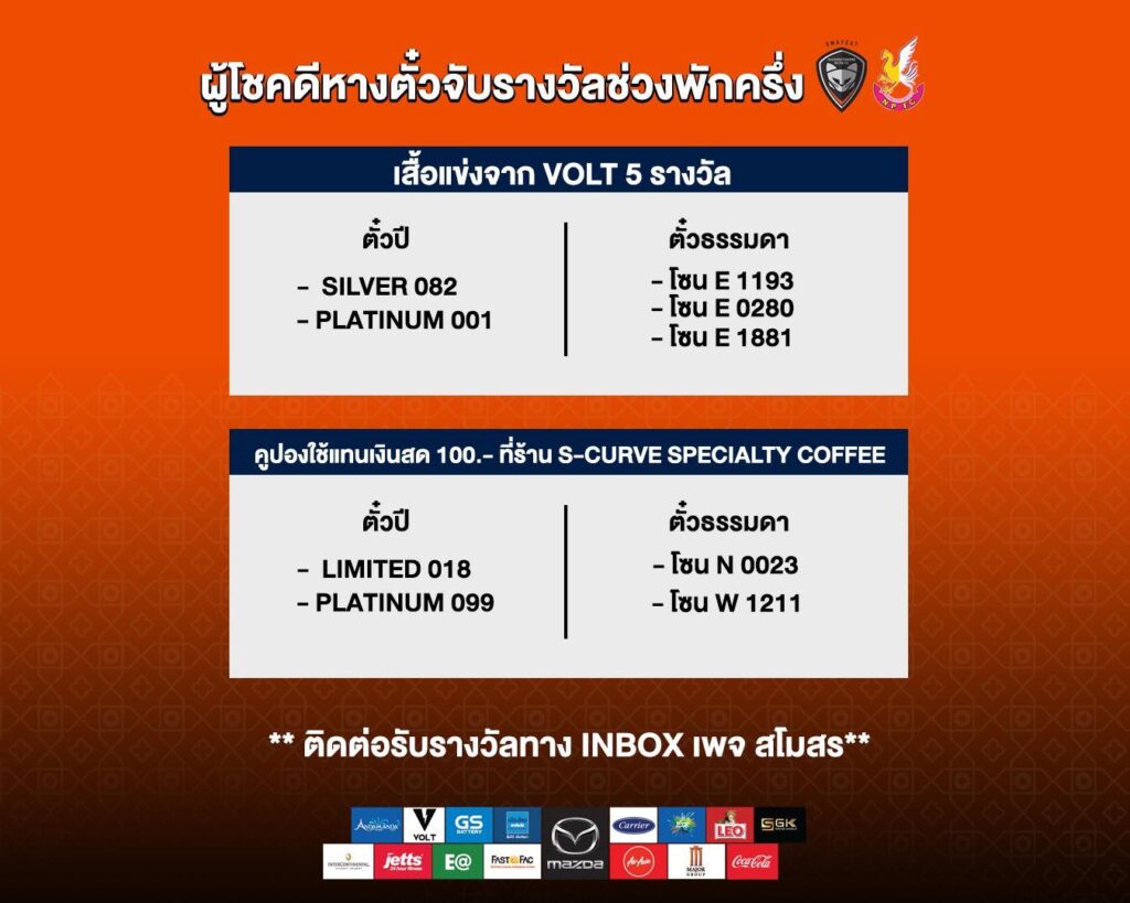 รายชื่อผู้โชคดี จับรางวัลช่วงพักครึ่ง